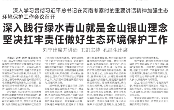 深入学习贯彻习近平总书记在河南考察时的重要讲话精神加强生态环境保护工作会议召开